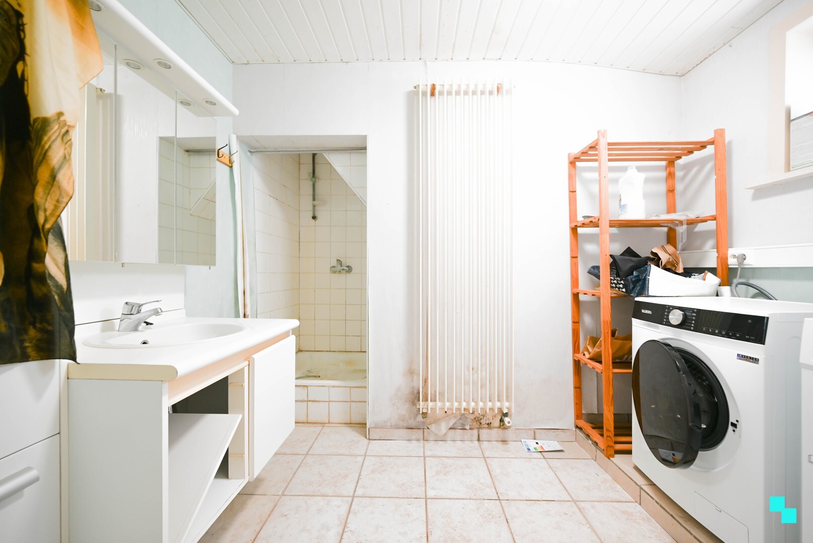 Inkomhal met gastentoilet, lichtrijke woonkamer met houthaard en aansluitend de keuken met leuke erker en annex hal naar eerste douchekamer (tevens ook wasplaats), berging en technische ruimte.Eerste verdieping