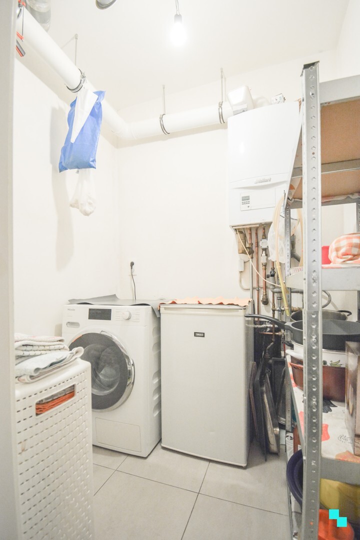 Inkomhal met vestiairekast, apart gastentoilet, twee slaapkamers, badkamer, leefruimte, geïnstalleerde open keuken en annex berging/wasplaats.Exterieur