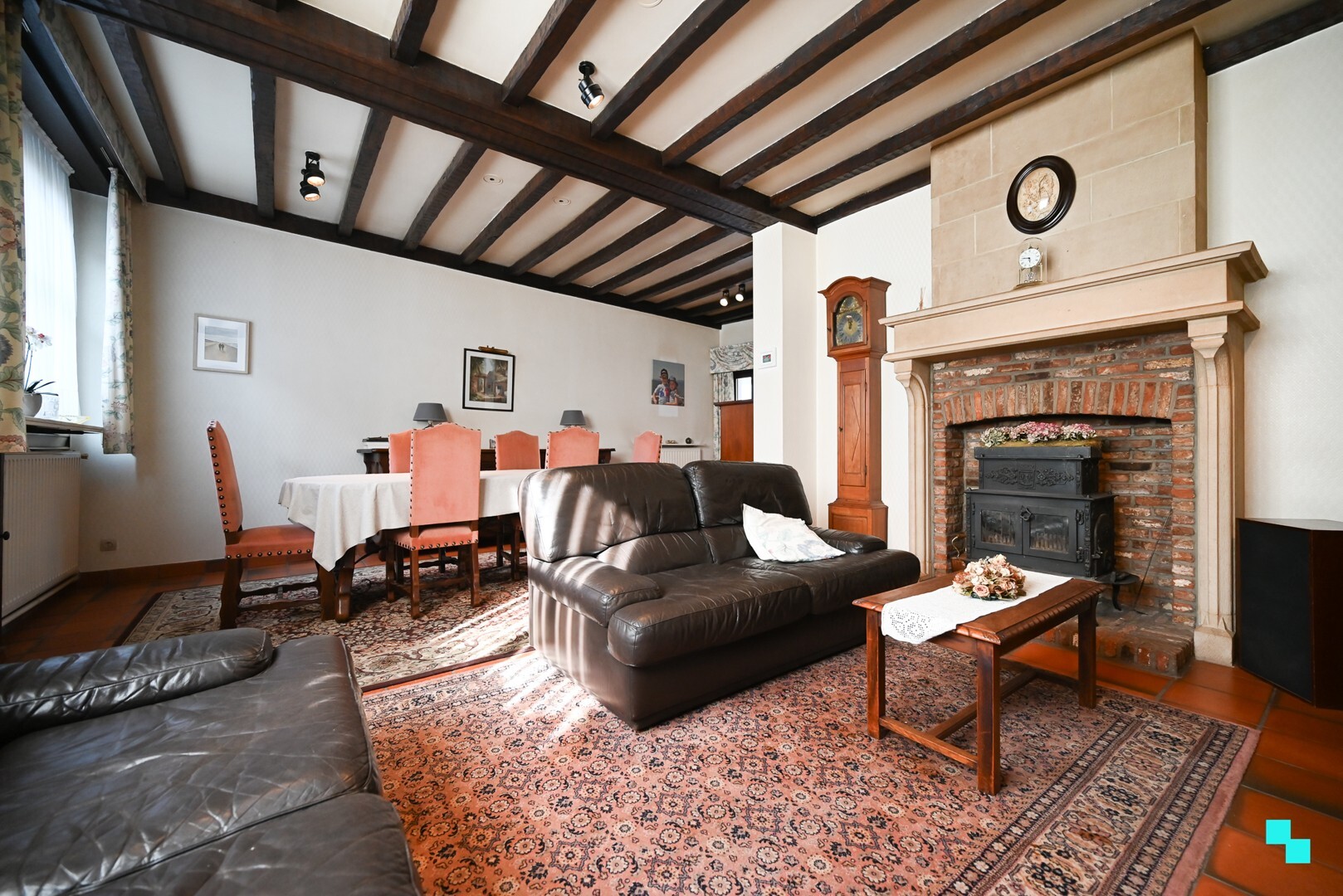 Zeer uitnodigende inkomhal met doorgang naar de leefruimte en keuken. De leefruimte is voorzien van een houthaard, ruimte voor een eetplaats met zicht op de tuin en aansluitend de geïnstalleerde keuken die nog extra plaats biedt voor een keukentafel. De uitbouw omvat een hal met doorgang naar de tuin en het ruim gastentoilet dat ook dienst doet als wasplaats.Eerste verdieping