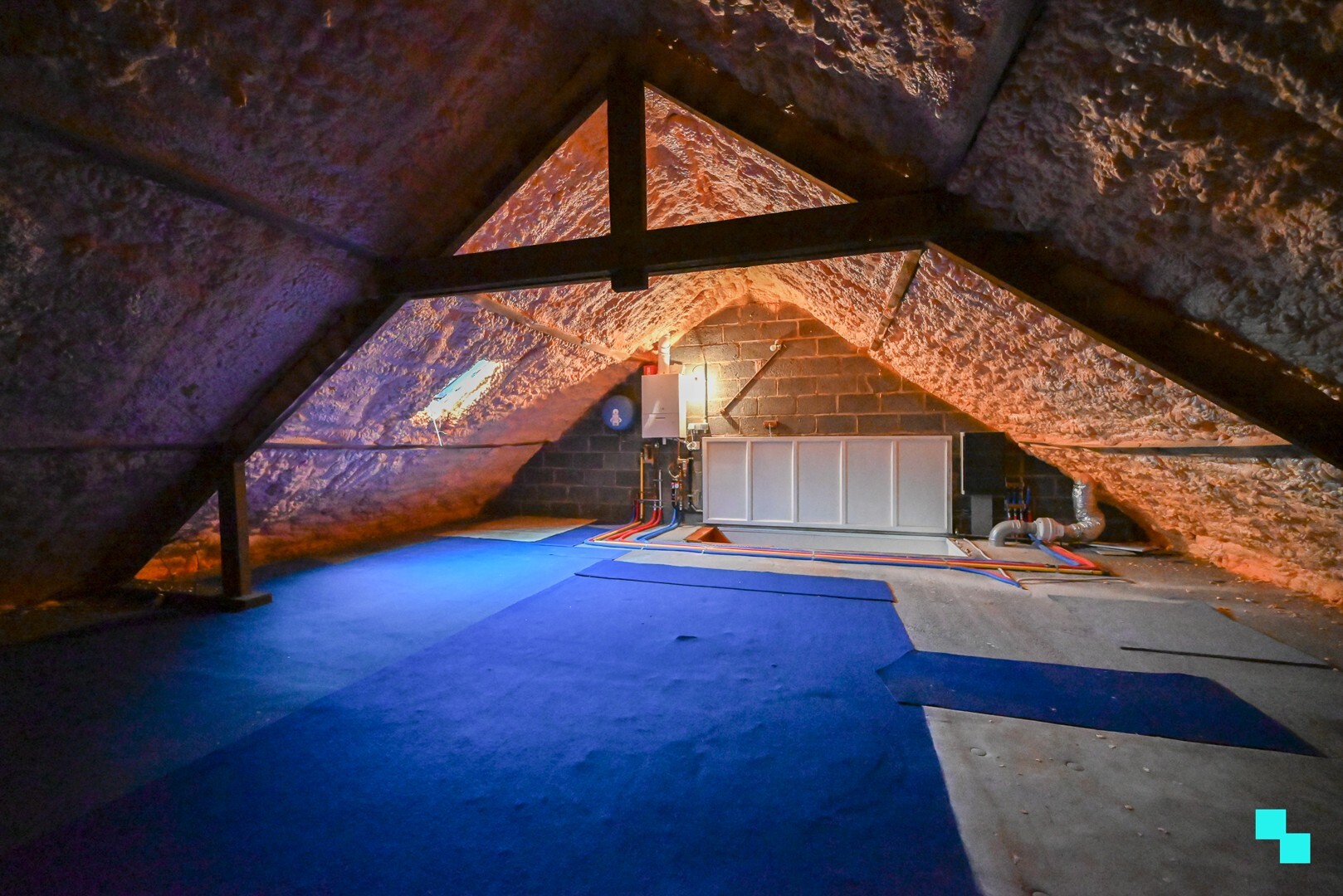 De zolder is bereikbaar via een vaste trap en biedt bijkomende mogelijkheden naar invulling toe.Exterieur