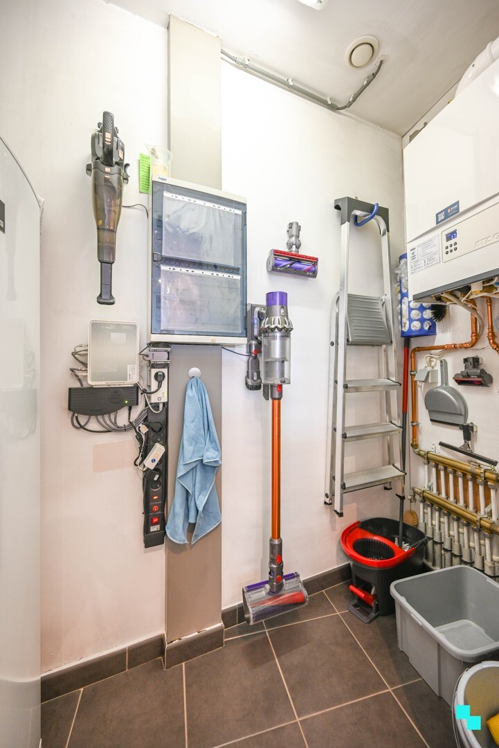 Een waardevolle extra troef is de privatieve zolderruimte, momenteel ingericht als bijkomende bergruimte.Kelderverdieping
