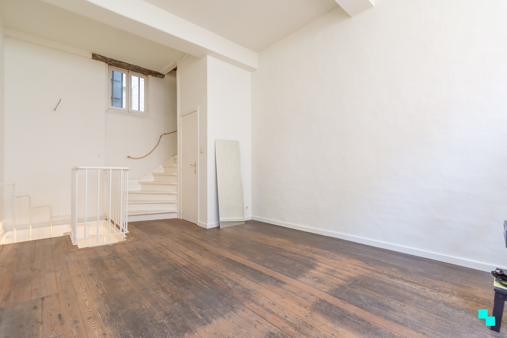 De zolderverdieping is te bereiken met een vaste trap, kan nog ingericht worden en beslaat de volledige oppervlakte van het gebouw