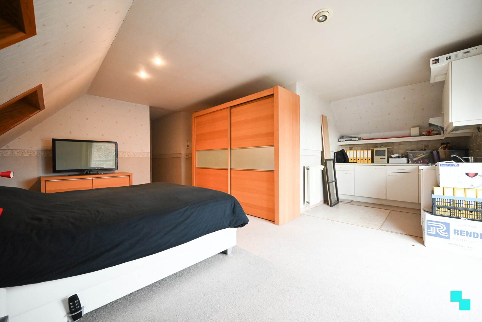 De nachthal geeft toegang tot vier volwaardige slaapkamers en een badkamer, die nog te renoveren is. Eén slaapkamer springt eruit en kan perfect fungeren als masterbedroom of studio, aangezien deze beschikt over een extra kamer ensuite én een kleine uitgeruste keuken.Zolder
