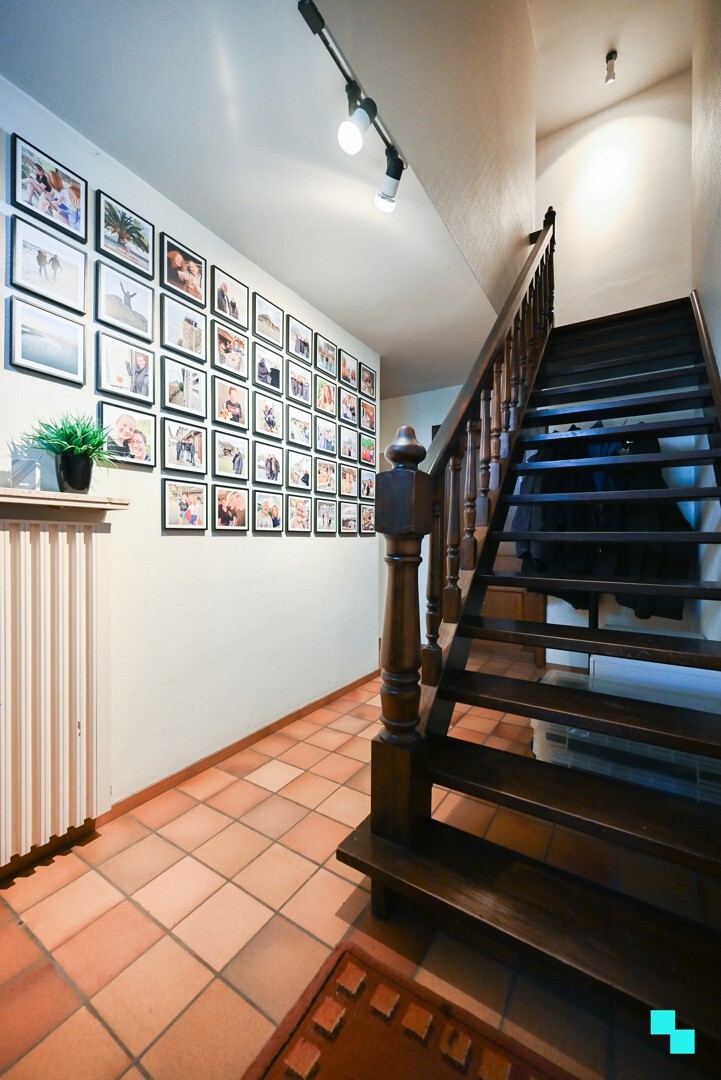 Via de inkomhal met gastentoilet betreden we de woning. Tussen de inkomhal en het leefgedeelte bevindt zich een bureauruimte, ideaal voor thuiswerk. De lichtrijke woonkamer met eetplaats sluit naadloos aan op een praktische berging. Daarnaast is er een tweede eetplaats in de keuken, met aansluitend de garage/wasplaats/technische berging met doorgang naar de tuin.Eerste verdieping