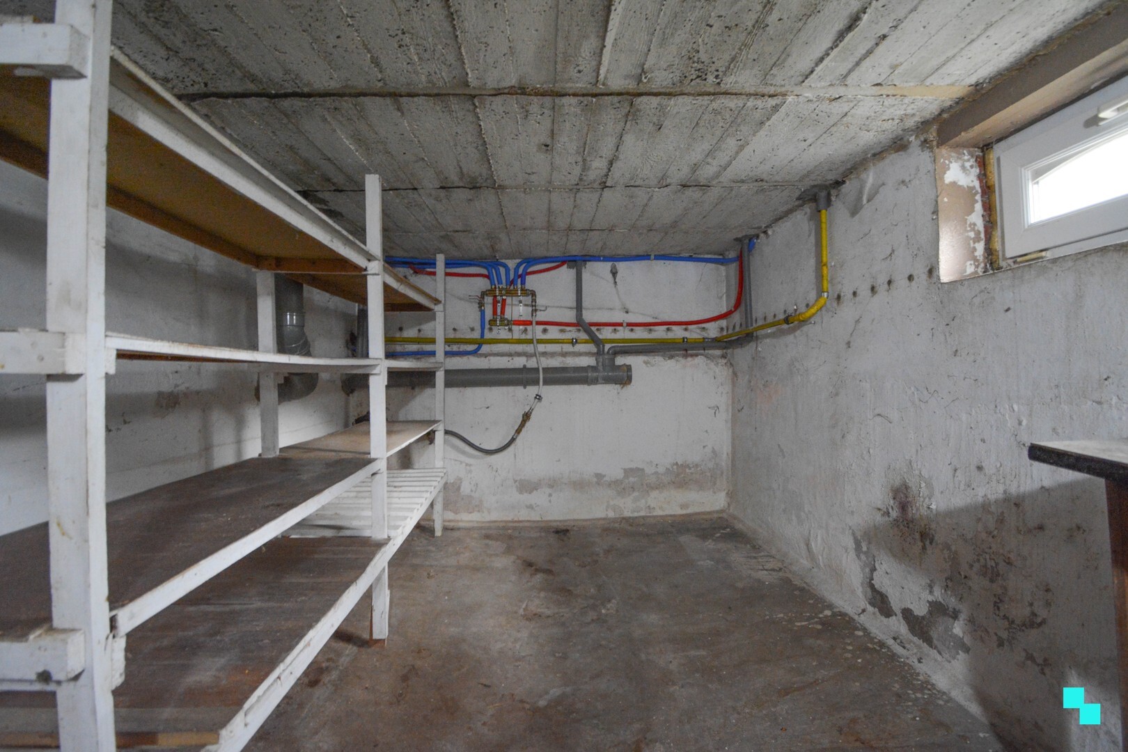 Leefruimte, keuken met toegang naar kelder, badkamer en bergingEerste verdieping