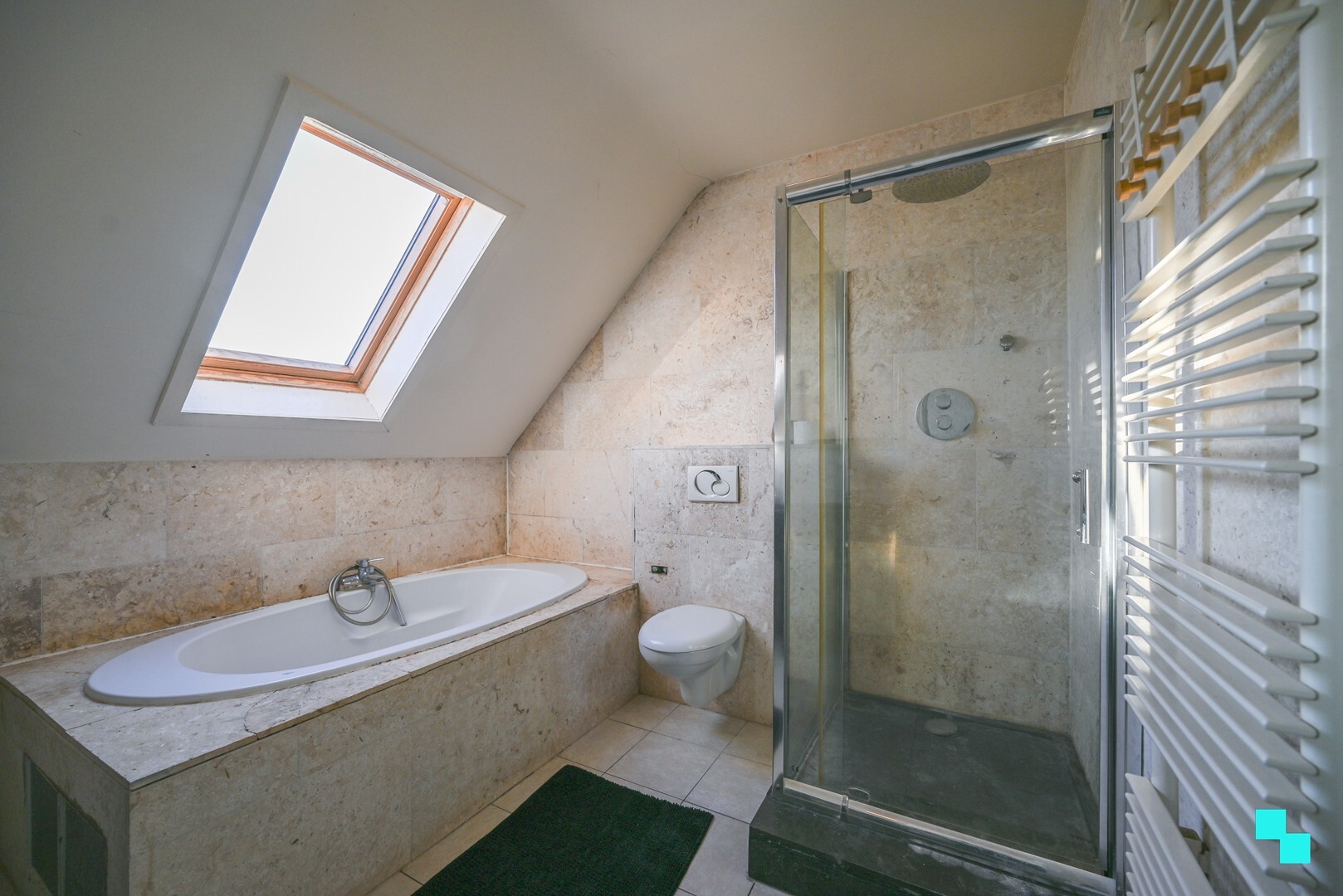 De bovenverdieping bestaat uit 4 slaapkamers waarvan één is voorzien van een eigen dressingsruimte en de tweede badkamer (ligbad, douche, toilet en dubbele lavabo).Zolderverdieping