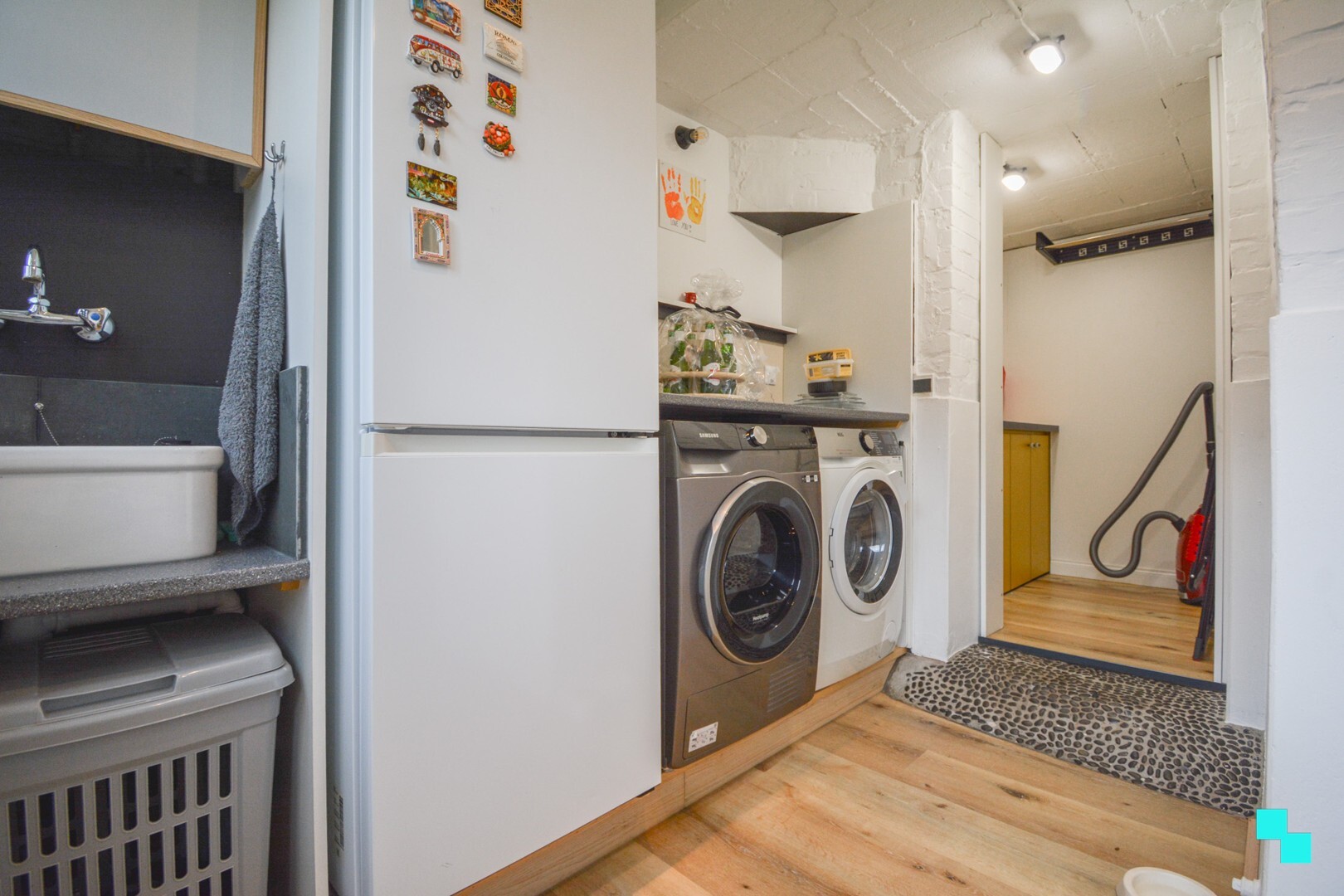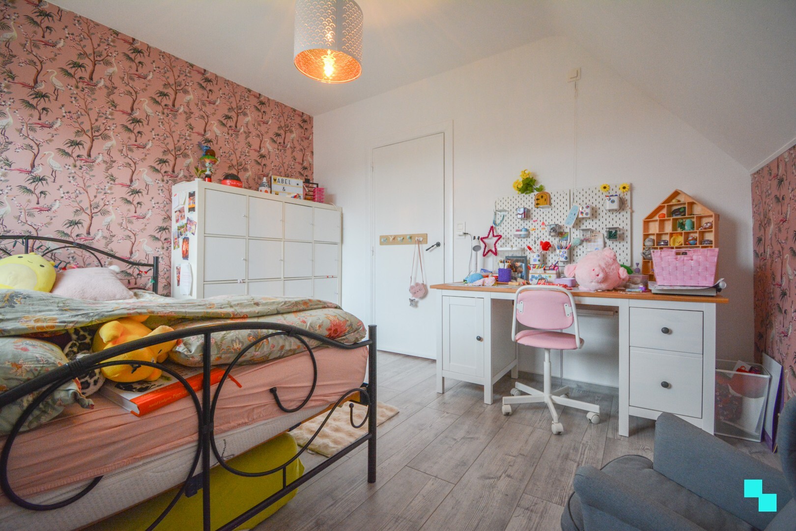 U wordt verwelkomd in een ruime en charmante inkomhal waar de vestiaire meteen in het oog springt. De inkomhal biedt toegang tot het apart gastentoilet met wastafel, inpandige garage met geautomatiseerde sectionaalpoort, extra gelijkvloerse kamer (ideaal als bureau, hobbyruimte of vijfde slaapkamer), gezellige leefruimte met sfeervolle houtkachel, aansluitend een ruime en lichtrijke eetkamer, geïnstalleerde keuken met zicht naar de tuin, kelder (ca. 9,6 m²), praktische wasplaats en berging. Via de wasplaats is er toegang tot de tuin.Eerste verdieping